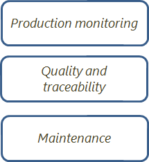 - Centralisation of all information: components, raw materials, suppliers, lots, serial numbers, current production conditions, alarms